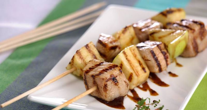 Brochetas de cerdo y manzana