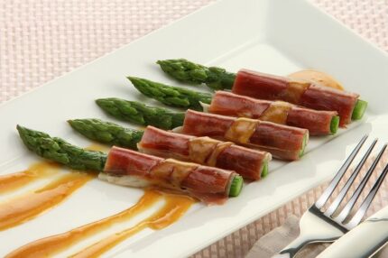 Espárragos trigueros con jamón