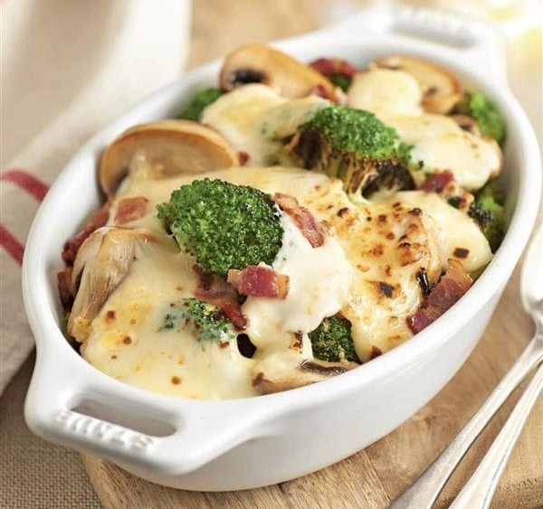 Brócoli con champiñones y bechamel