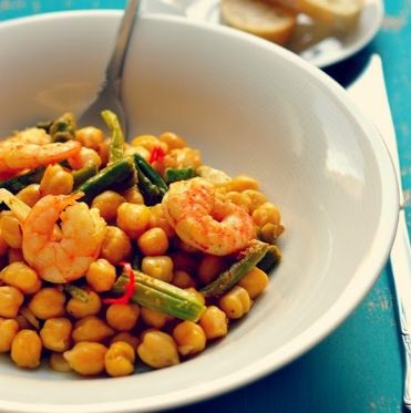 Garbanzos salteados con langostinos y trigueros 0,00 €