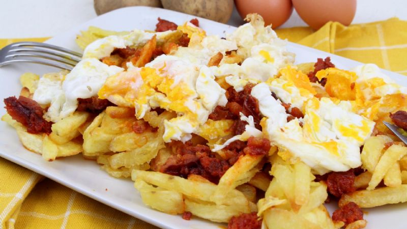 Huevos rotos con chorizo