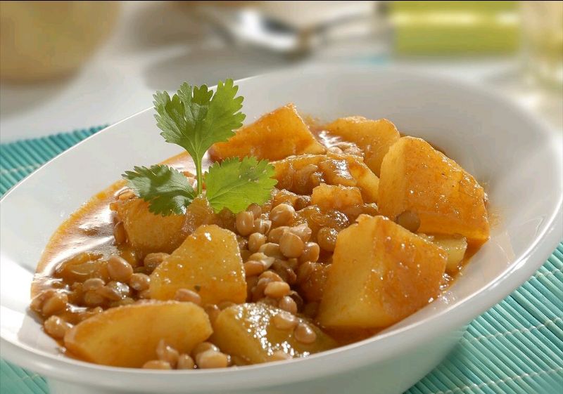Patatas estofadas con lentejas al curry