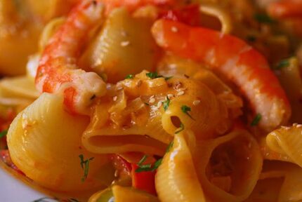 Pasta frita con gambas