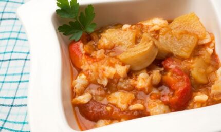 Bacalao en salsa de tomate con aceitunas