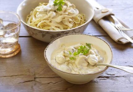 Spaghetti con salsa de champiñones