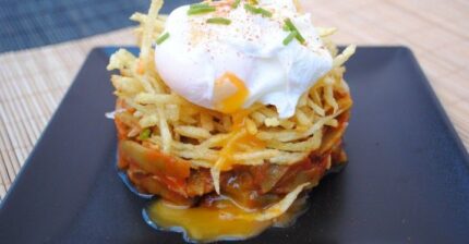 Tiburones con gratén de huevo