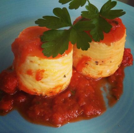 Timbal de pasta con tomate
