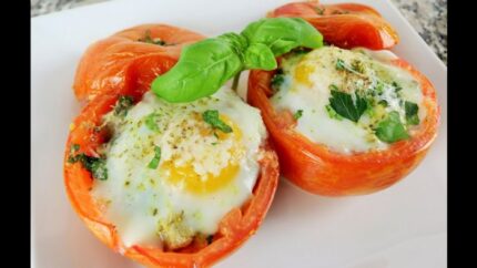 Tómate relleno de carne y huevo al horno